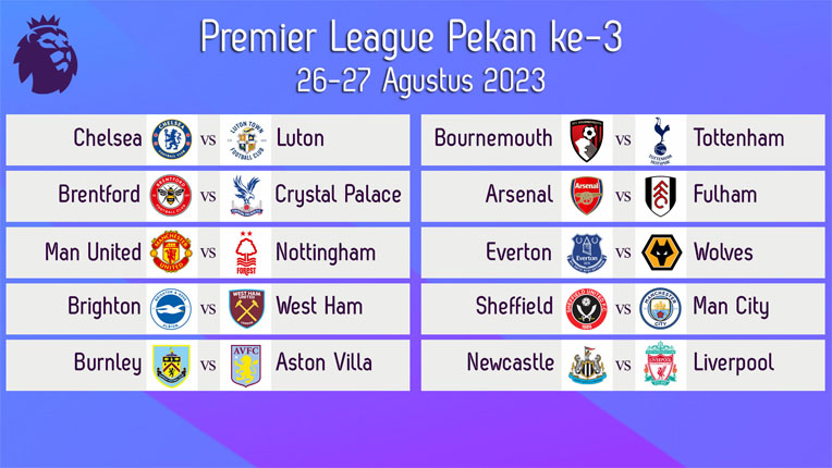 Jadwal Liga Inggris 2023-2024 Pekan ke-3