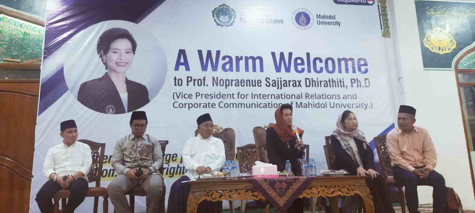 Tampak juga Rektor Universitas KH Abdul Chalim, Dr KH Mauhibur Rokhman (Gus Muhib) dan Wakil Rektor Dr Fadly Usman serta Ketua Alumni Universitas Mahidol di Indonesia Dr Zamal Nasution.