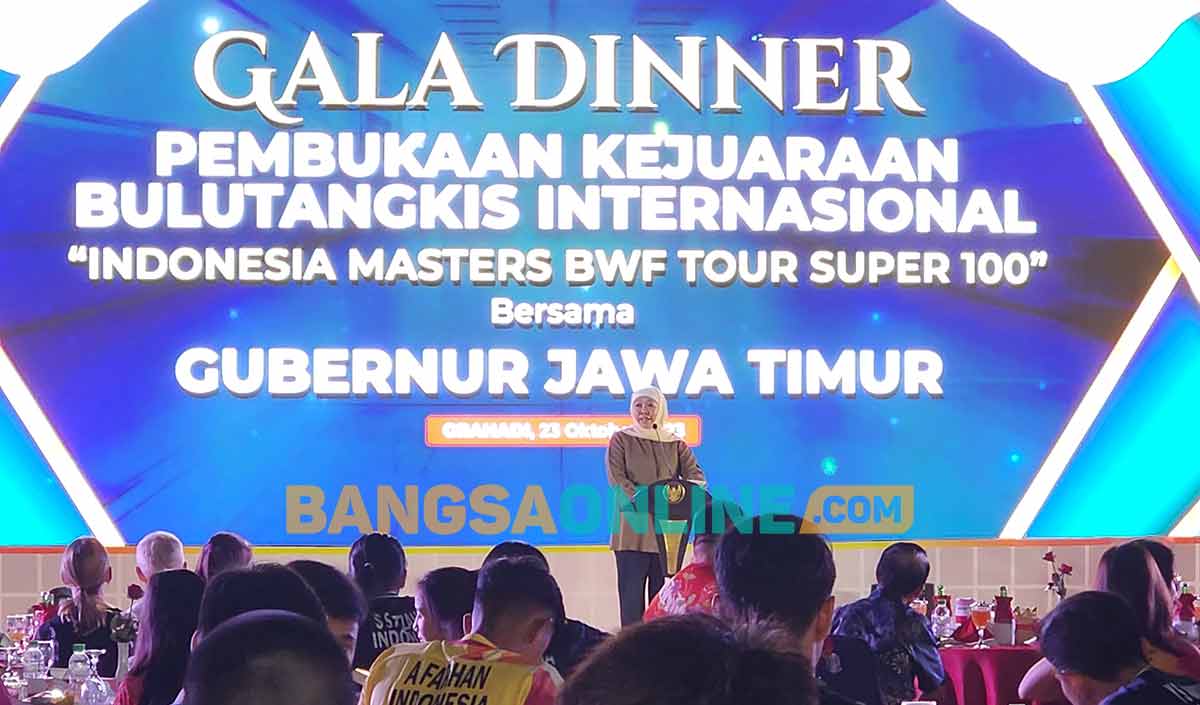 SURABAYA, BANGSAONLINE.com – Gubernur Khofifah mengajak masyarakat luas untuk turut meramaikan dan menyaksikan gelaran Indonesia Masters Super 100 yang digelar di Jatim International Expo Convention Surabaya pada 24-29 Oktober 2023.