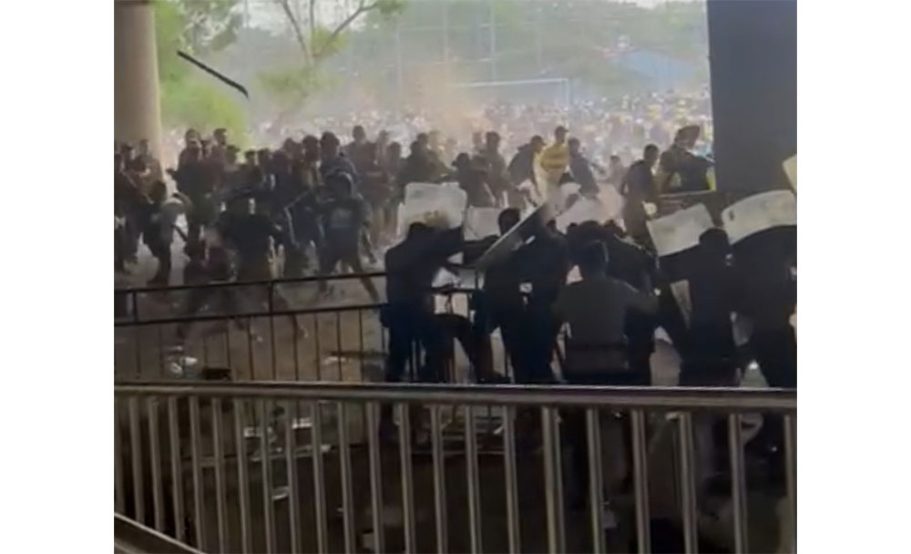 Namun, polisi akhirnya berhasil memukul mundur suporter yang mencoba merangsek ke dalam lapangan.